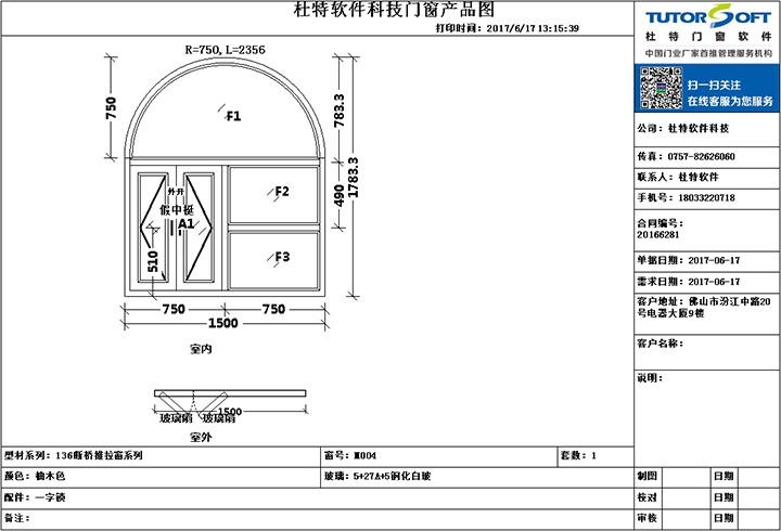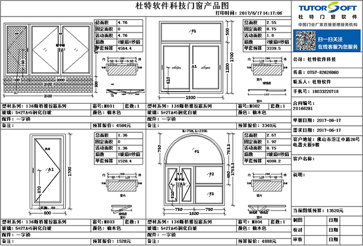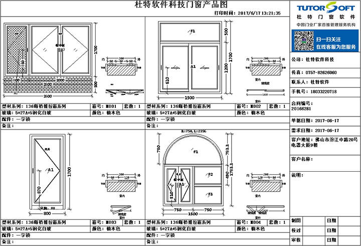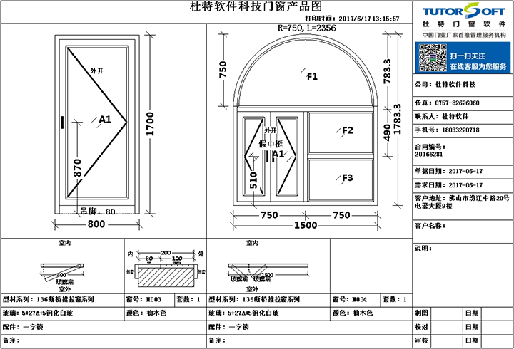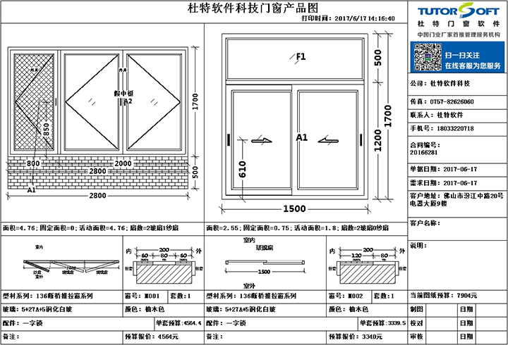 設(shè)計門窗后可選擇內(nèi)外雙色,可選擇彩色打印或選擇預(yù)覽報表發(fā)送給客戶確認